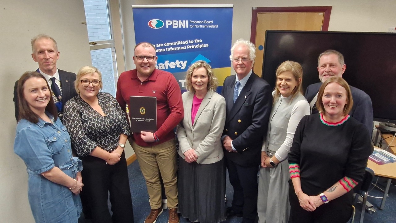 The High Sheriff Award winner along with the High Sheriff of County Londonderry, members of the Probation Board of Northern Ireland, and the Chairman and Hon Secretary HSANI 5 February 2026.