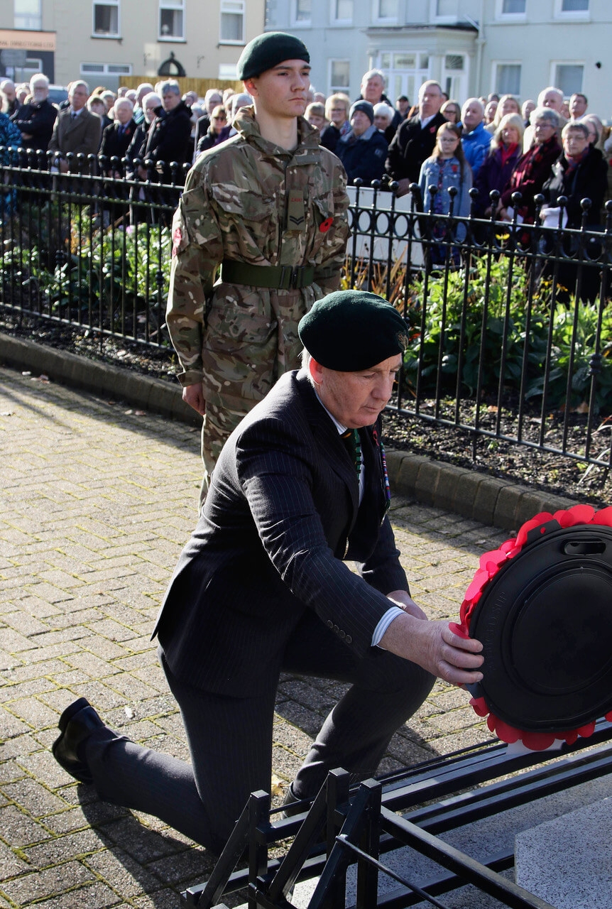 The High Sheriff lays a wreath at the Comber RBL Remembrance Day parade and Service, The Square, Comber.